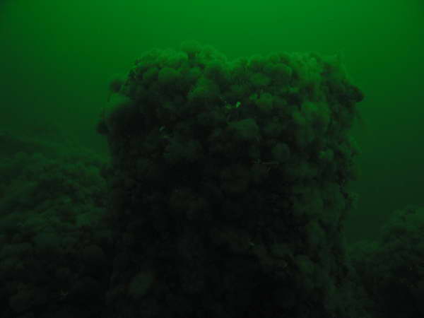 Lige ved siden af pillerne er der nogle små rør der stikker op fra havbunden som er meget flot begroet af div søplanter og små Baby muslinger.